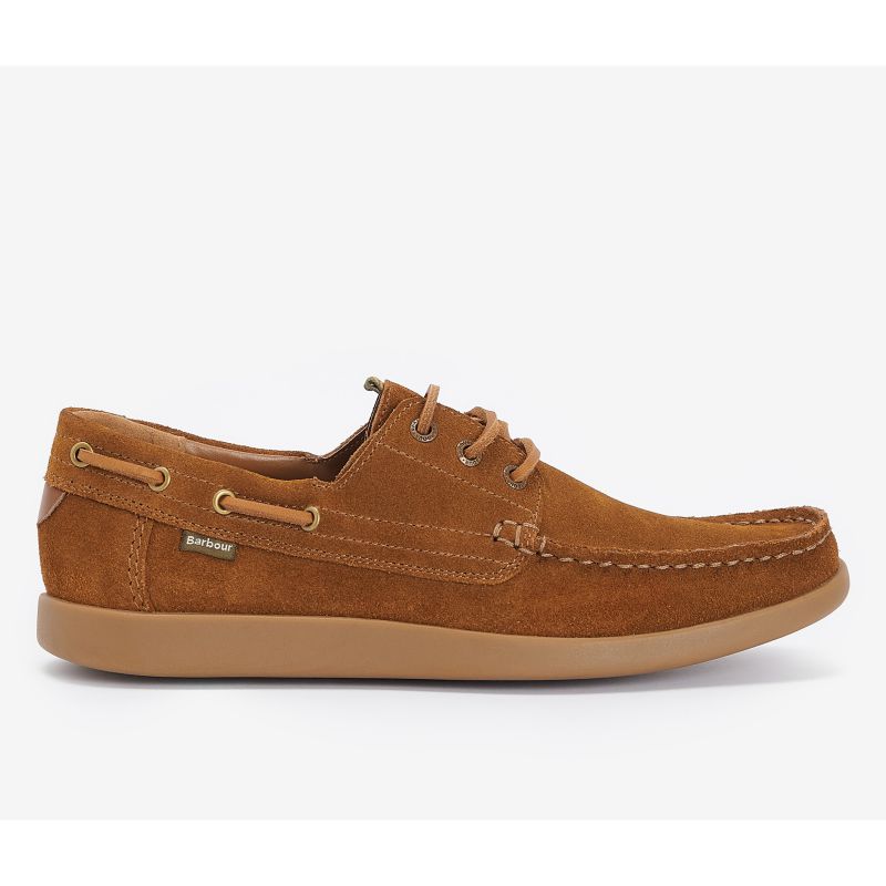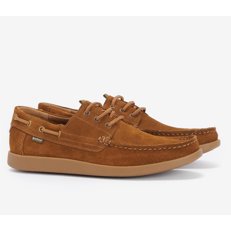 The Barbour Armada deck shoe in cognac suede offers both style and functionality. With an exclusive branded rubber cup sole and a woven side flag, this 3-eyelet boat shoe is perfect for casual outings. The 100% suede upper and 100% cotton lining provide comfort and durability. Keep your shoes protected with a simple spray to maintain the quality of the upper.
