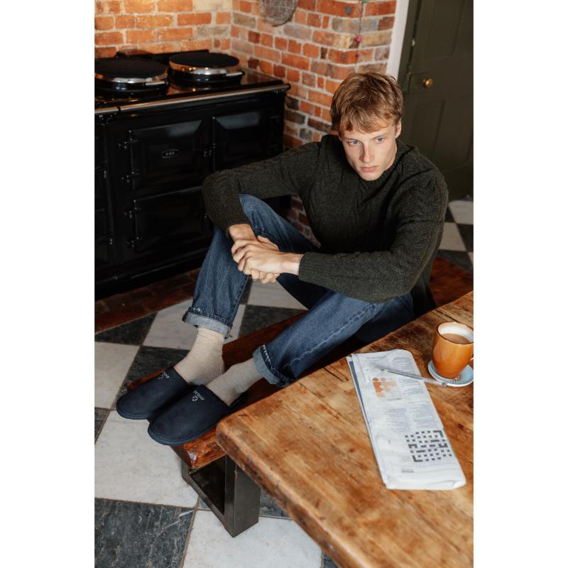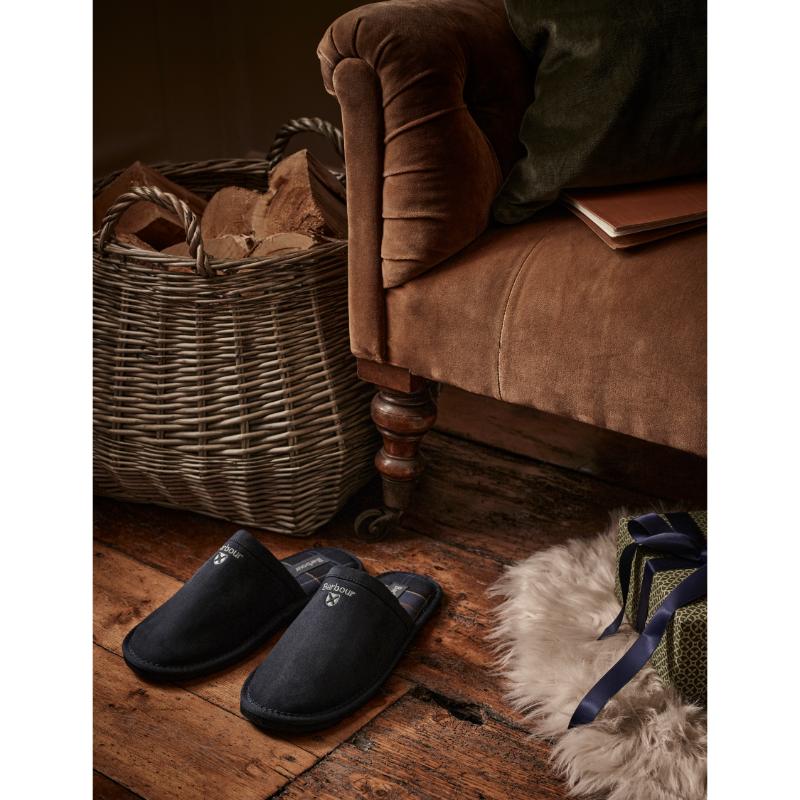 Introducing the Barbour Everitt Mule Slipper. These classic slippers feature a faux suede exterior, adorned with the iconic Barbour Saltire logo embroidery. The classic tartan lining and footbed provide both comfort and a nod to classic Barbour styling. Complete with a Barbour branded sole, these slippers are the perfect addition to your loungewear collection.