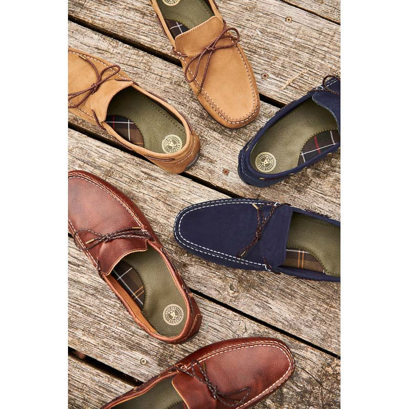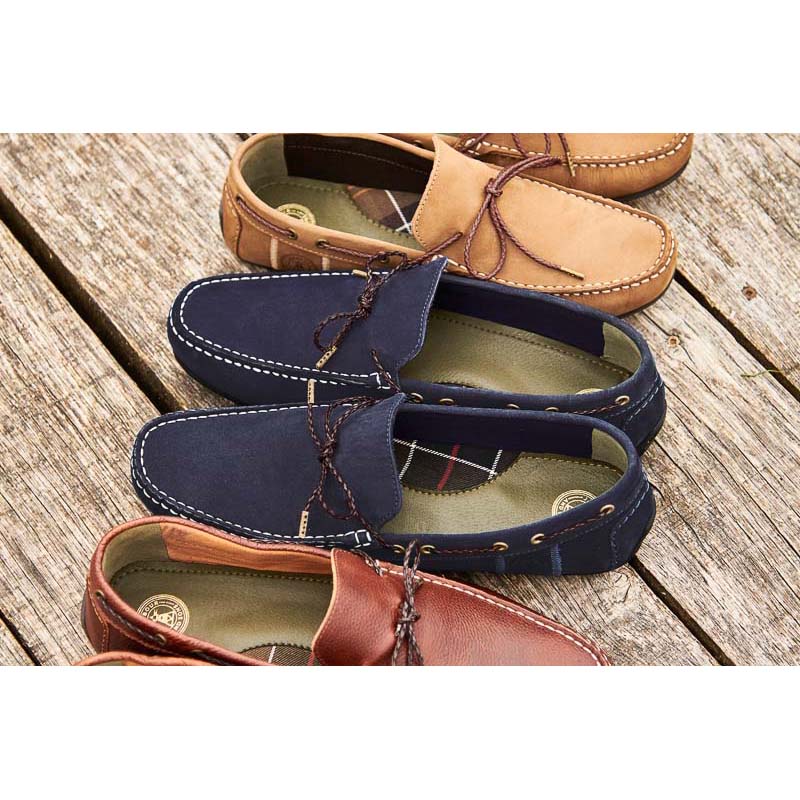 The Barbour Jenson Suede Men's Driving Shoe is a smart slip on shoe, ideal for when the weather is good. Featuring an intricate leather suede lacing system with metal eyelet detail, saddle stitching and embossed Barbour branding. Set on a branded outsole with superb grip, the Jenson would look very smart styled with jeans, chinos or even a pair of shorts during the warmer months.