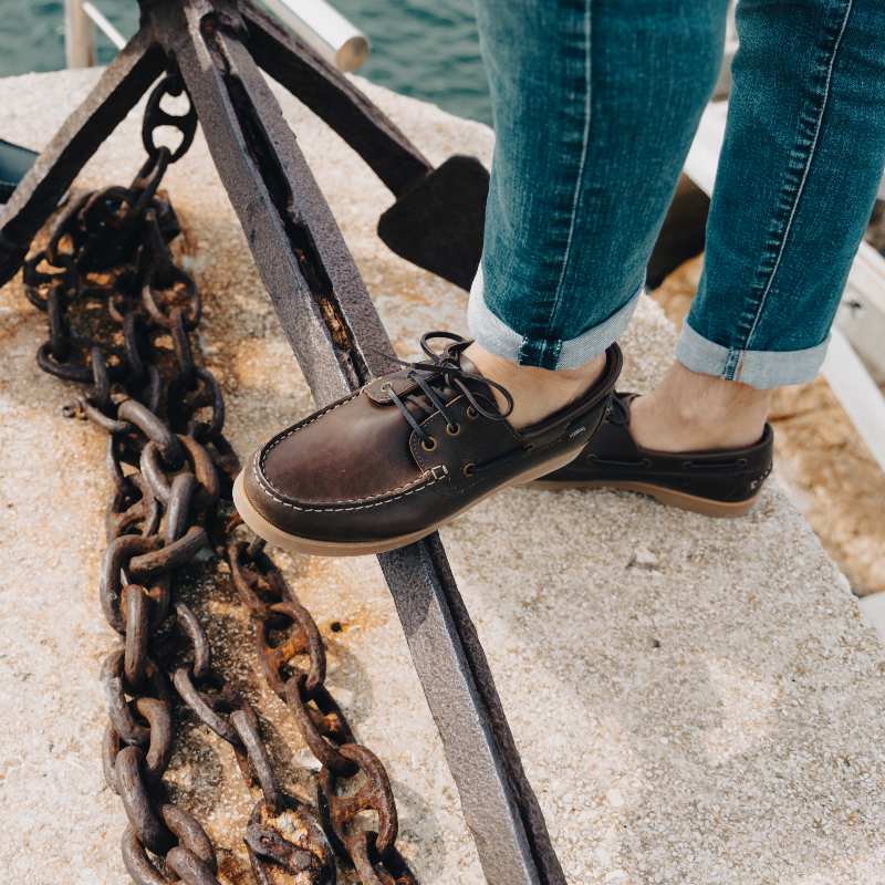 The Le Chameau Galion Mens Deck Shoe provides all of the understated style that a classic deck shoe should. Crafted from premium full grain leather that is splash and salt water resistant, ideal for coastal trips and equally hard wearing for everyday use. There is a non-marking, non-slip rubber sole unit that will provide support, comfort and grip, and a classic eyelet lacing system with exposed decorative stitching.