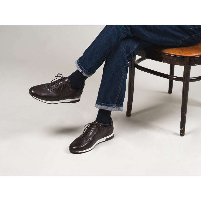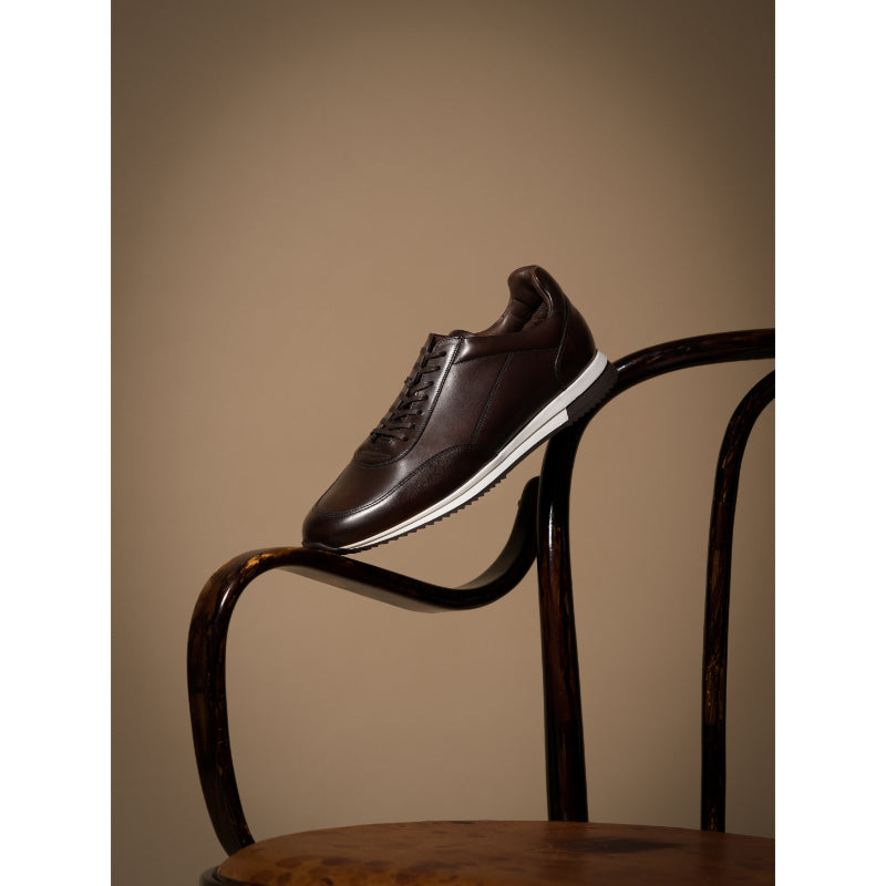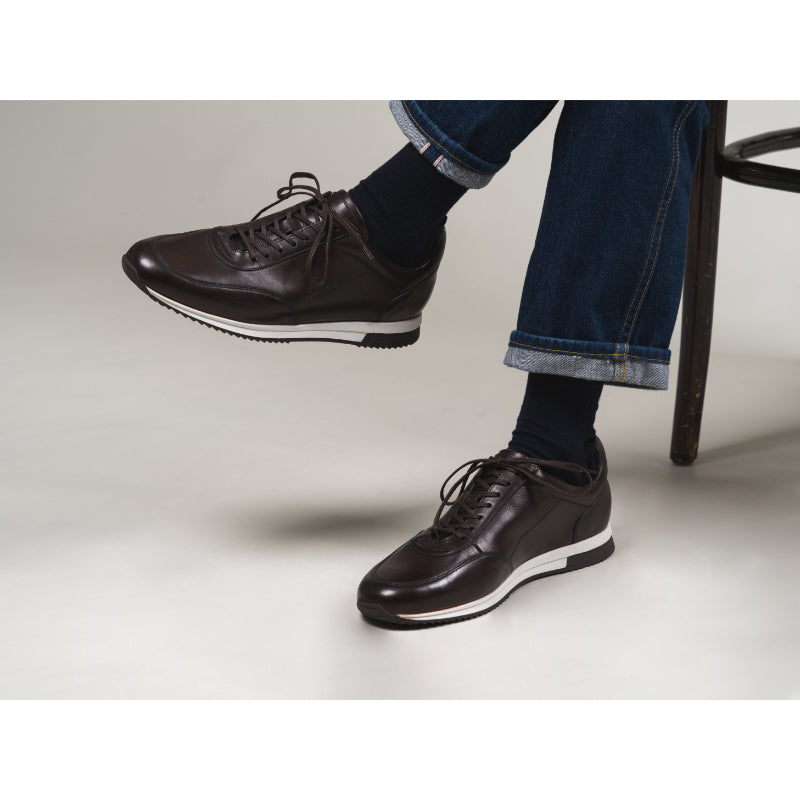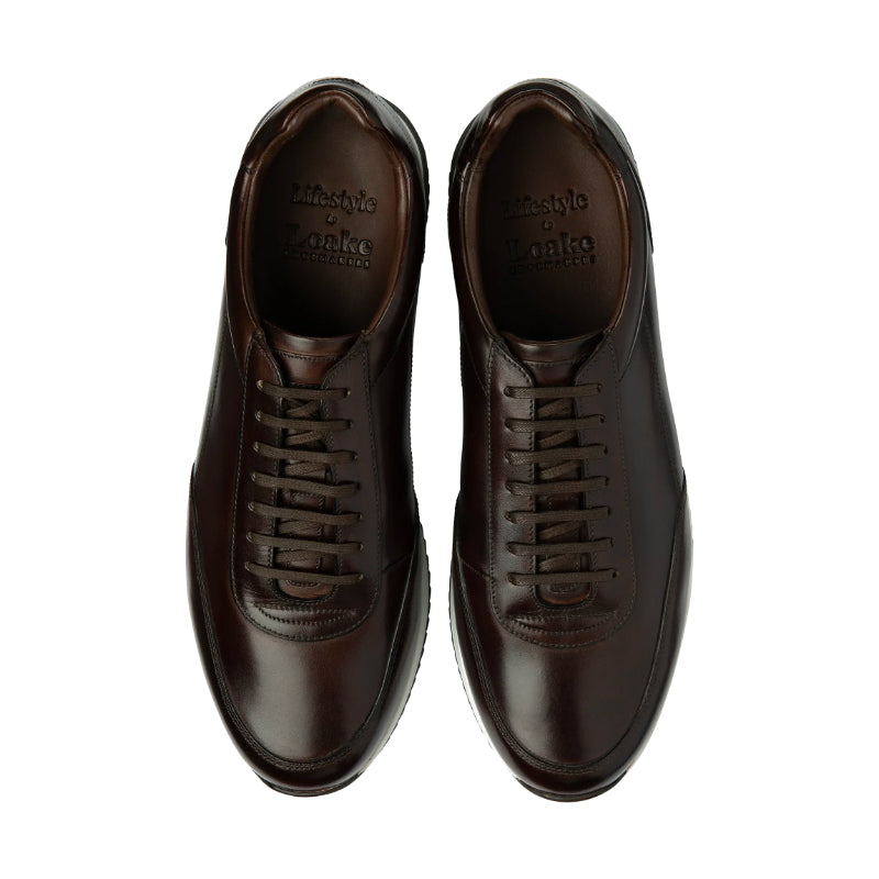 Loake Bannister Leather Mens Trainer - Dark Brown