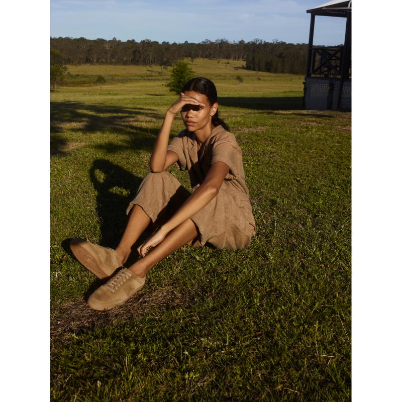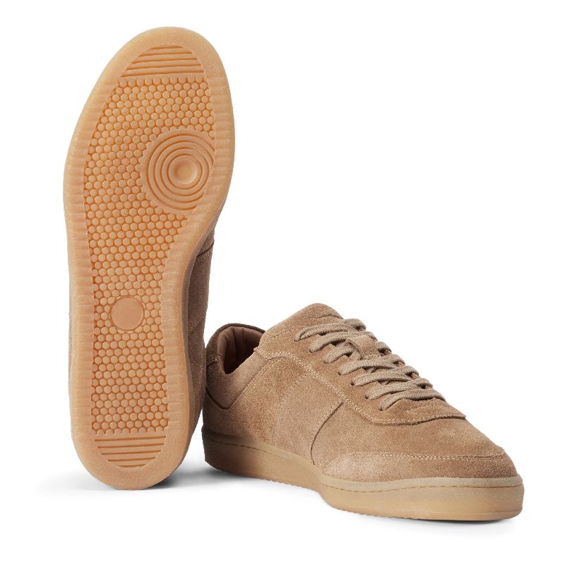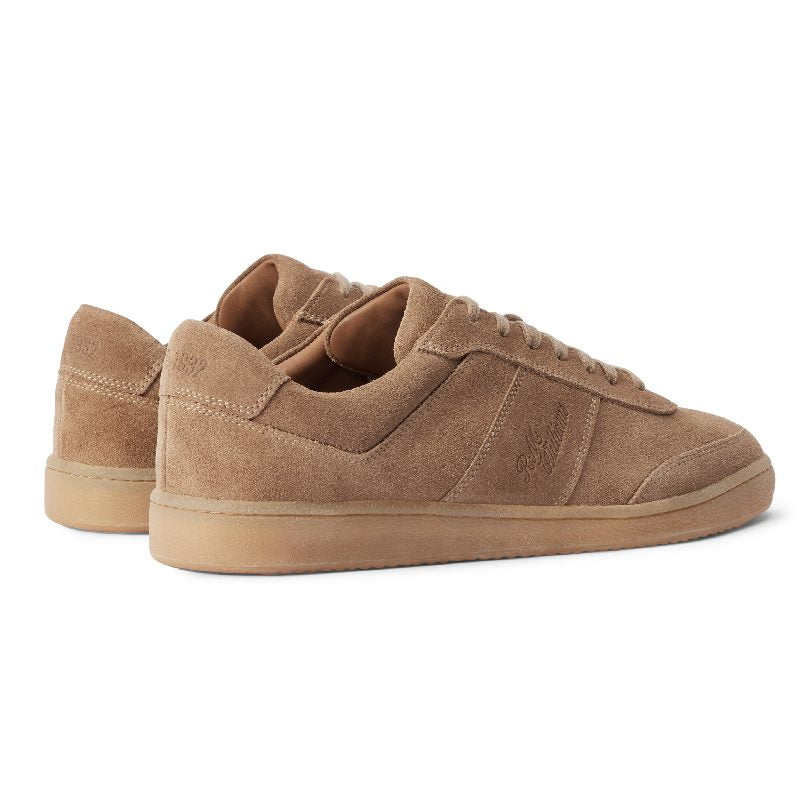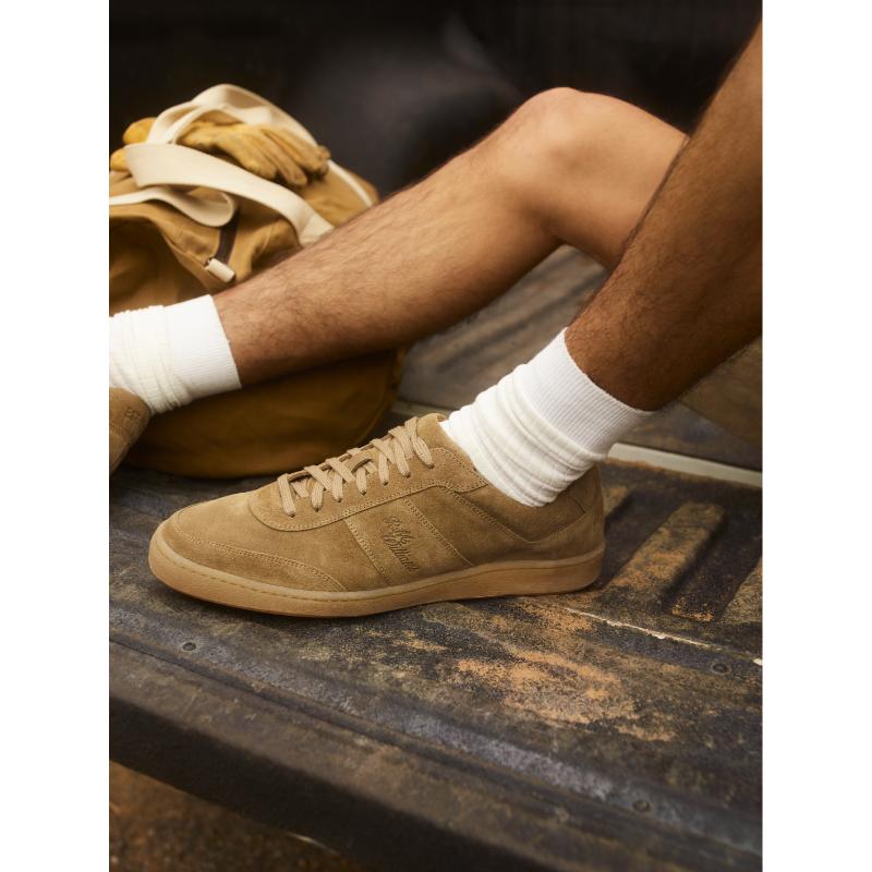Introducing the R.M.Williams Sandbar, the ultimate mens trainer crafted from premium suede leather. Made with an innovative, plastic-free sole by Natural Fibre Welding, this trainer is both stylish and environmentally-friendly. Expertly crafted to provide superior comfort and durability, these trainers feature a luxurious leather lining and soft cotton tonal laces. Experience luxury and sustainability with every step in these Portuguese-made trainers.