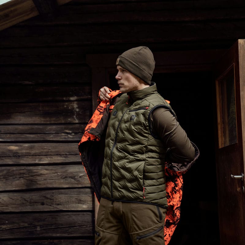Stay warm and comfortable outdoors with the Harkila Clim8 Insulated Mens Waistcoat. This intelligent self-regulating garment features down insulation, a wind-resistant lining, and a heat-reflecting liner that directs heat back towards your body. It's powered by a power bank (not included) through a USB connector and can be controlled directly on the waistcoat itself or through the clim8® app. Purchase the power bank separately here.