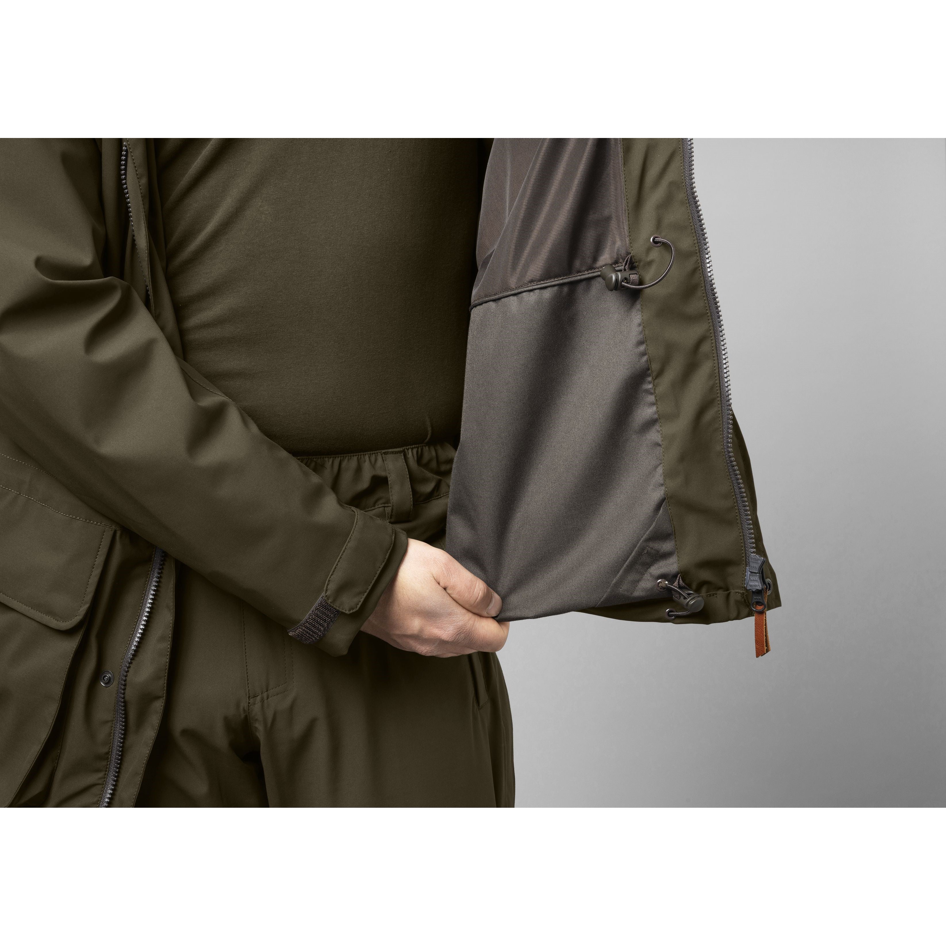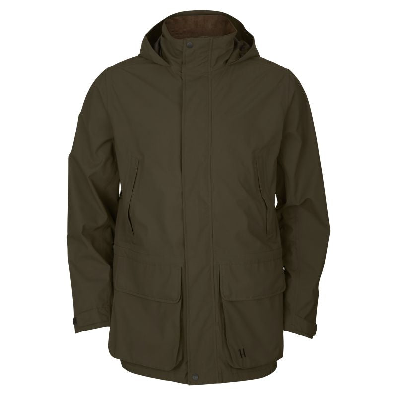 The Harkila Orton Technical HWS Men's Waterproof Jacket is an updated version of the incredibly popular Orton Packaway, designed to be a thicker, more substantial field coat for weather protection in even the harshest climates. Featuring Harkila's lightweight, waterproof, windproof, and breathable 'weather system' (HWS) membrane, and is crafted from a hard-wearing, flexible polyester outer with a soft and quiet peached finish. There is a cosy cord collar, stowaway hood, zipped handwarmer pockets, and large cartridge pockets with retainer straps and drain holes. Cut in a classic fit with an adjustable waist, hem, and cuffs to ensure you are as comfortable as possible during your chosen country pursuit.