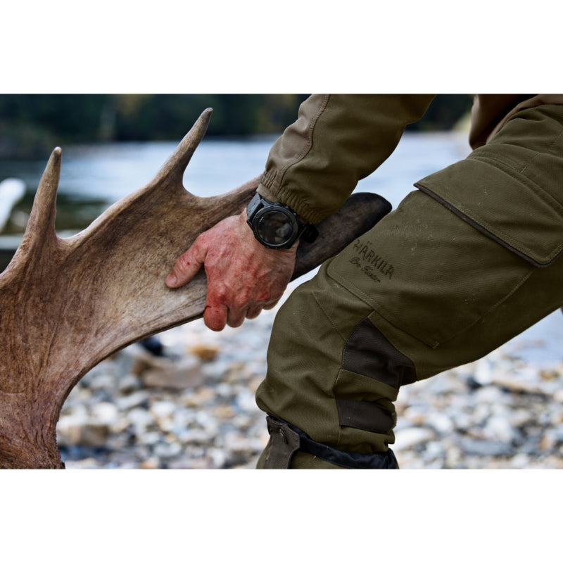 The Harkila Pro Hunter Endure Waterproof Trousers are an impressive update of the hugely popular Pro Hunter X. Traditionally styled for a smart, discreet look without compromising on functionality. Using highly breathable Airtech technology with a waterproof, windproof and breathable GORE-TEX membrane. Crafted from Durable Water-Resistant heavy canvas fabric with lightweight, durable Cordura reinforcement. With in-built articulation and adjustment at the knees allowing for great freedom of movement and fit. Incorporating large, easily accessible thigh pockets with a hook and loop fastener divider, easy entry top pockets, zipped cartridge holder pockets, buttoned rear pocket, double button closure, suspender buttons and a Cordura reinforced snow lock. Innovative and dependable, these Pro Hunter trousers will perform and withstand inclement weather for many years to come. Harkila offer a five-year warranty on the fabric, these trousers are that good.