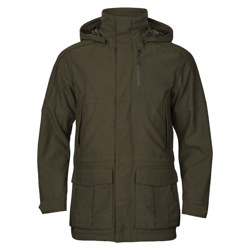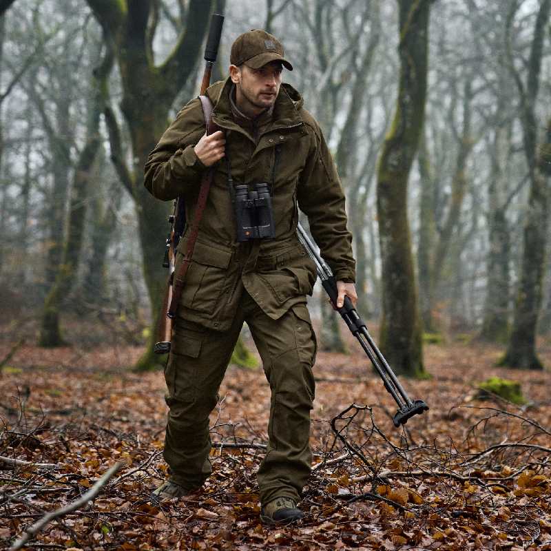 The Harkila Pro Hunter GORE-TEX Legacy Jacket marks Härkila’s 40th anniversary with a durable design tailored for demanding hunting environments. Crafted from windproof, water- and dirt-repellent AirTech™ fabric, it features a GORE-TEX® membrane for dependable waterproofing and breathability. Practical details include two large front patch pockets with drain holes, fleece-lined handwarmer pockets, a QuickLoad strap to keep the cartridge pocket accessible during shooting, and a dedicated rifle cartridge holder—ensuring functionality and comfort when it matters most. This jacket offers practical features like an inner pocket and a waterproof phone pocket accessible without unzipping. It includes a radio pocket, removable hood, durable two-way zip, and adjustable cuffs, hem, and waist. Built for reliable performance, it comes with a 5-year warranty.