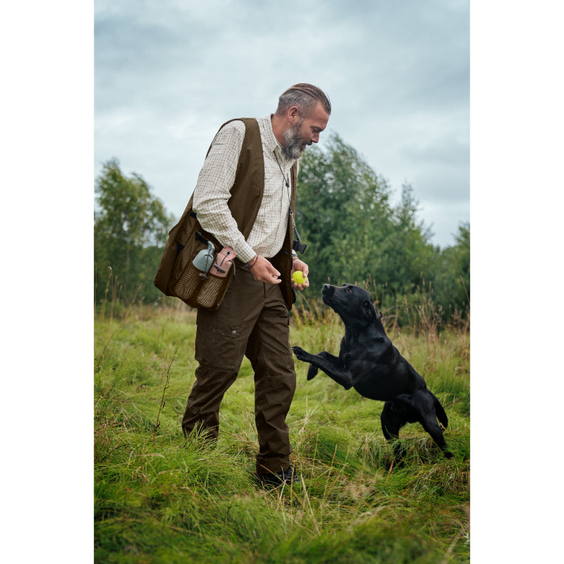 Dog training can sometimes be challenging, but the Harkila Retrieve Windproof Dummy Vest will make life a whole lot easier! Designed specifically for days with your dog, but also useful for a variety of other country pursuits, this waistcoat includes a range of handy pockets and clever features. There is a strong, adjustable click belt for a comfortable, secure fit, large front pockets, rear game pocket, two chest pockets and a variety of mesh pockets. There is plenty of room to keep treats, training aids and dummies, and a D-ring for attaching your dog’s lead. Crafted from a lightweight yet durable water resistant outer that is windproof and quick drying and complete with a handsome checked lining.