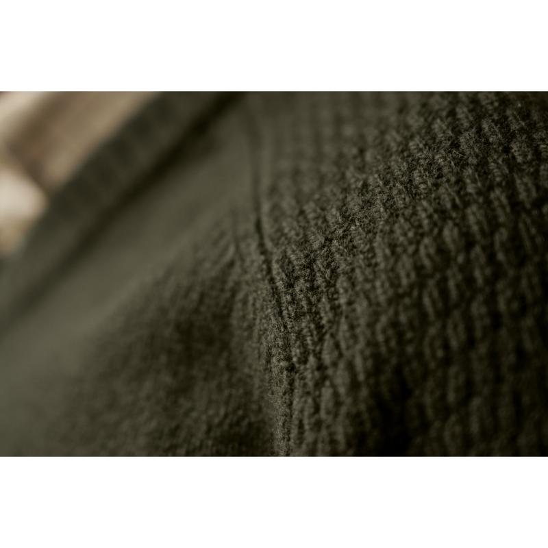 - Raglan sleeves with distinctive shoulder knit pattern