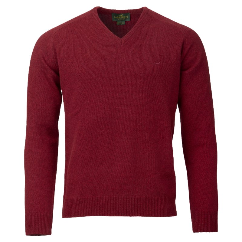 Laksen Trent Mens Lambswool V-Neck Jumper - Wine