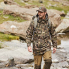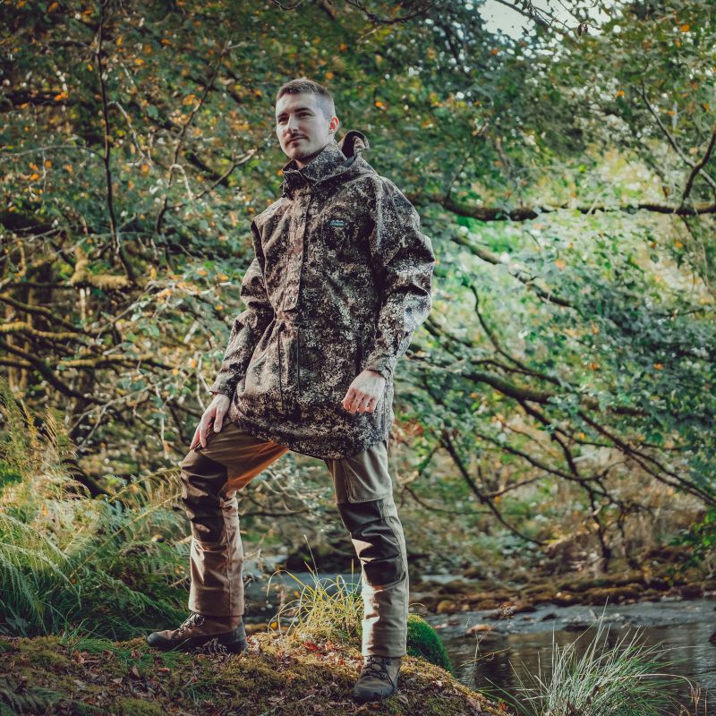 The Ridgeline Monsoon Classic Smock incorporates state of the art technology into an old school design. Featuring a 3-layer laminated soft touch shell offering a specification of serious waterproofing and breathability and because the fabric doesn't absorb water, it is quick drying. With adjustable cuffs, a peaked hood, and waterproof zip pockets, the Classic performs without compromise. Available in Ridgeline's innovative Dirt Camo, a digital pattern allowing you to blend into the contours and colours of most EU hunting environments.