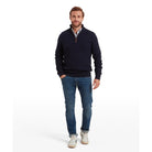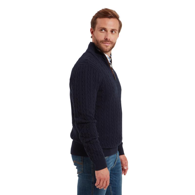 Schoffel Calton Cable Knit Cotton Cashmere 1/4 Zip Mens Jumper - Navy