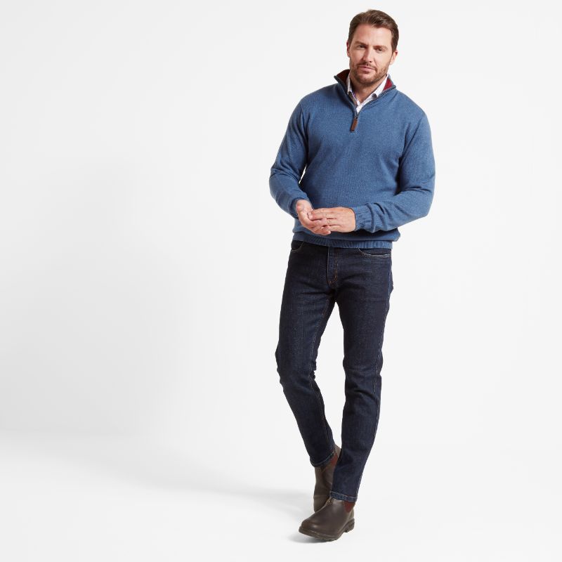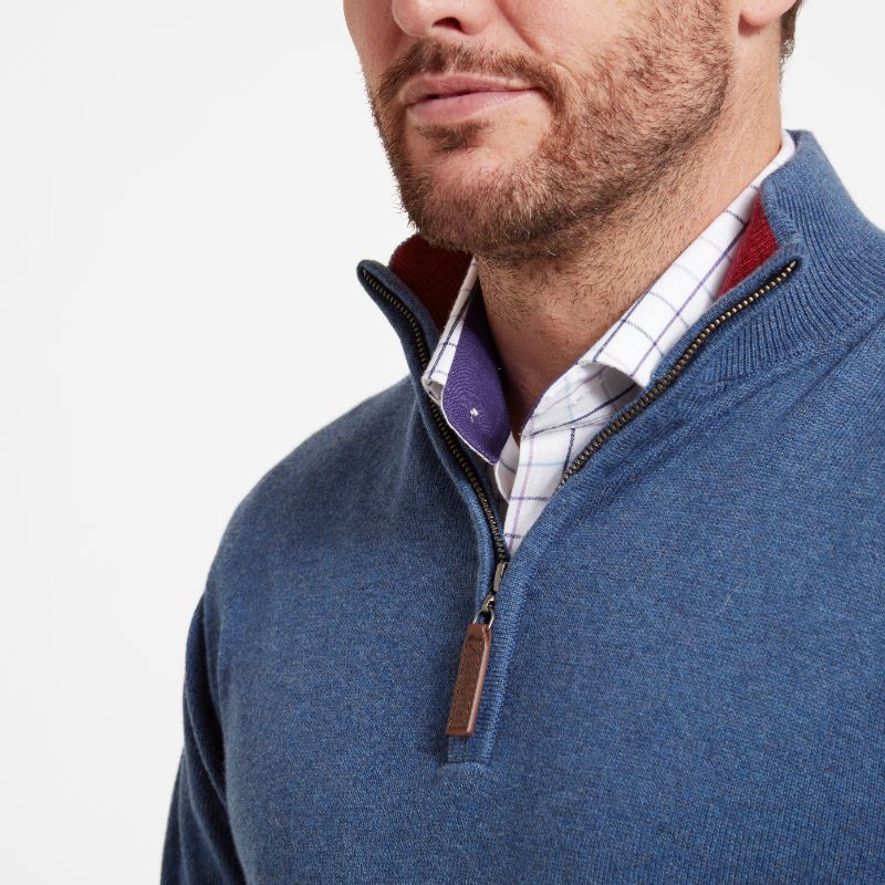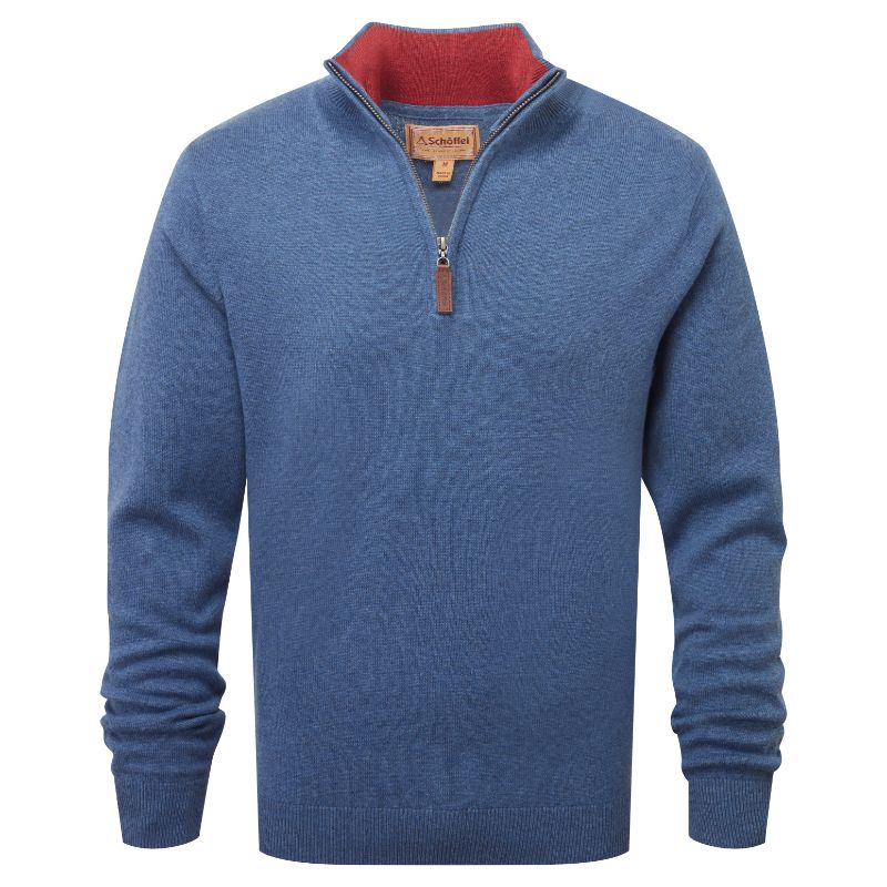 Schoffel Cotton Cashmere 1/4 Zip Mens Jumper - Stone Blue