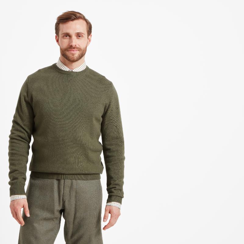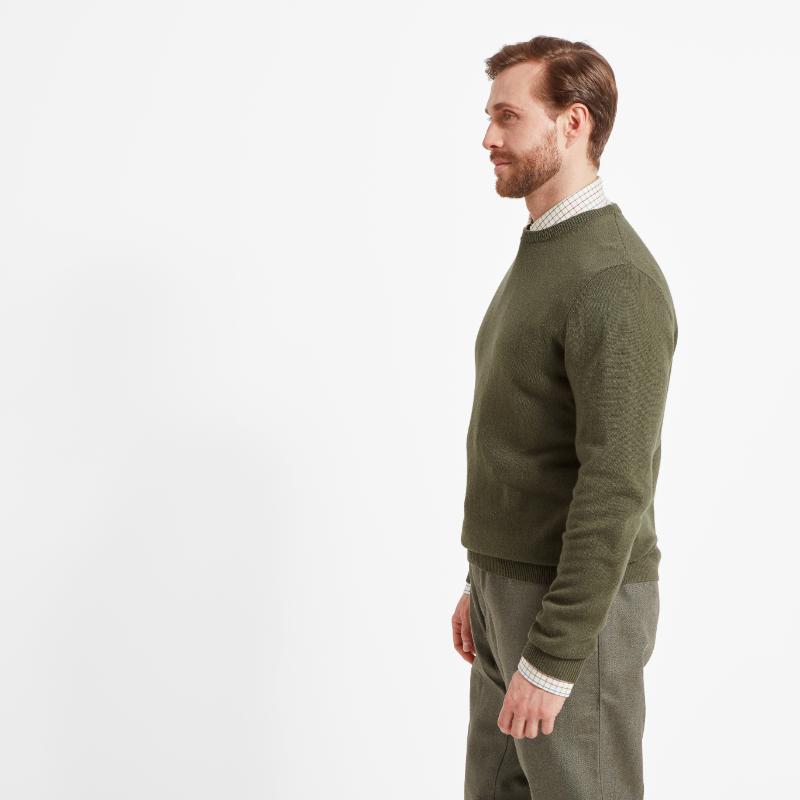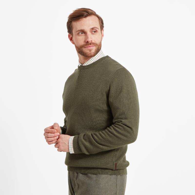 Schoffel Lambswool Crew Neck Mens Jumper - Moss