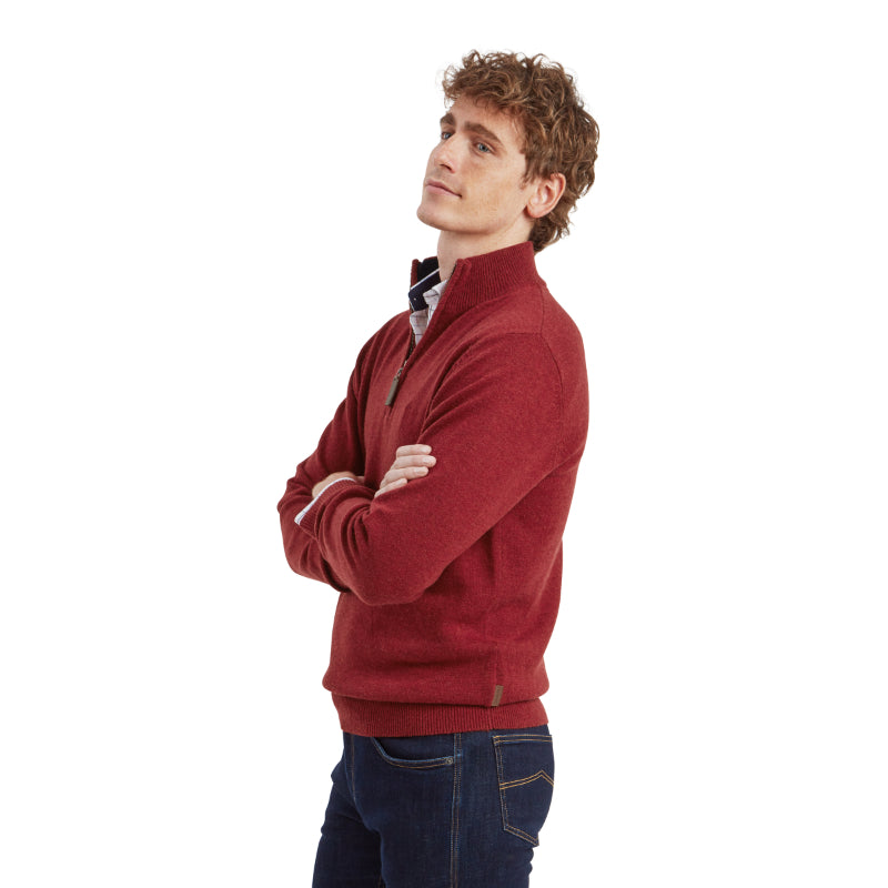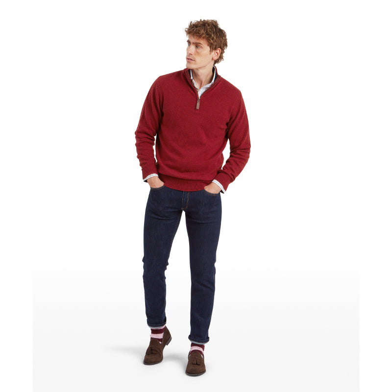Schoffel Lewis Lambswool 1/4 Zip Mens Jumper - Deep Red