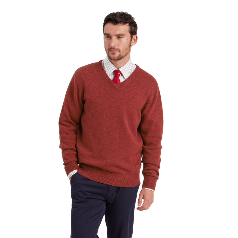 Schoffel Lewis Lambswool V Neck Mens Jumper - Deep Red