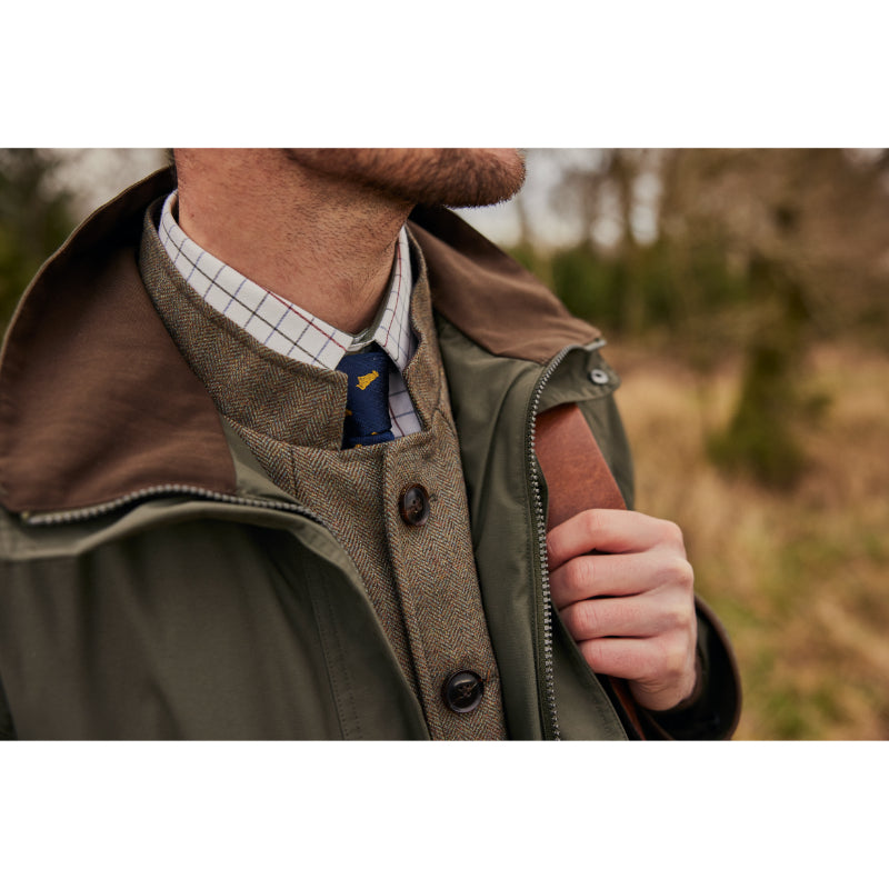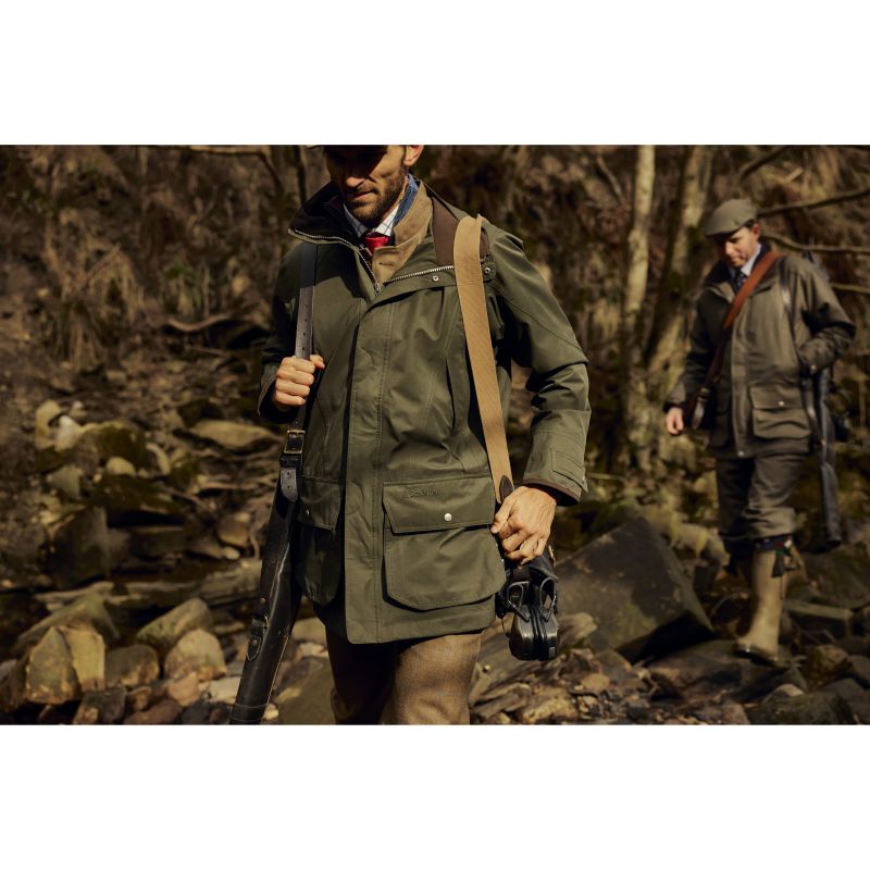 The immensely popular Schoffel Mens Ptarmigan Ultralight II Waterproof Packable Coat has had a makeover and is extremely lightweight, as its name suggests. Now boasting a more contemporary sporting cut for ultimate lift. It has a Venturi 2 layer laminate, is fully waterproof, windproof and highly breathable. All Schoffel’s shooting design features are present; microfleece hand warmer pockets with retainer straps, large bellow cartridge pockets with drainage holes, adjustable storm cuffs, detachable hood and two-way zip. It’s machine washable and quick drying which makes it a pretty handy coat to have as part of your shooting kit. Features a tailored sporting fit.