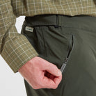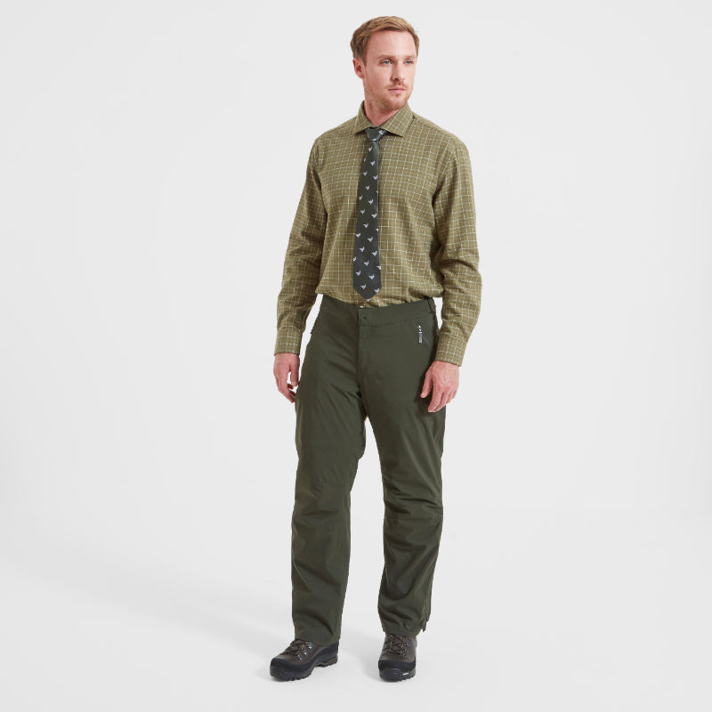 The Snipe Mens Venturi Overtrouser from Schoffel is 100% waterproof and offers full protection from wet weather. The Venturi 2 layer laminated outer fabric is waterproof, windproof, and breathable, making these trousers comfortable to wear when being active in the field, ideal for shooting, beating, picking up or just winter dog walks. Featuring a hook and bar waist fastening with a hook and loop fastener, and a clever elasticated waistband with side adjustments so it is easy to get the perfect fit. Designed to aid movement with articulated knees and heavy duty YKK zipped boot gussets to easily get them on and off over wellies. Completed with Schoffel's usual attention to detail signature Snipe house check lining and branded poppers.
