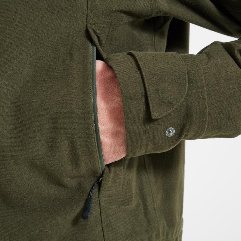 The Schöffel Sutherland Mens Venturi Stalking Waterproof Smock is a garment stalkers can rely on. Waterproof, windproof and highly breathable thanks to its 3-layer Venturi laminate, its soft, brushed face fabric and magnetic closure technology on the placket ensure complete silence when you need it most. A drawstring waist and side vents at the hem ensure comfort, while water repellent zips on the side pockets maximise its functionality. The smock also features a ½ length YKK zip at the front, inner security pockets and an adjustable hood which can be stowed in the collar. Machine washable.