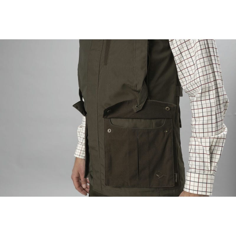 The Seeland Arden Men's Waistcoat is essential for warm-weather shooting or during cold colder seasons when worn as a layer. Designed with a durable composition and practical style, it features a PFC free Seetex membrane, mesh lining for high breathability, handwarmer pockets, large front pockets with drain holes, and a game pocket with two zippers. Plus, the Quick Load straps allow you to reload your ammo in no time.