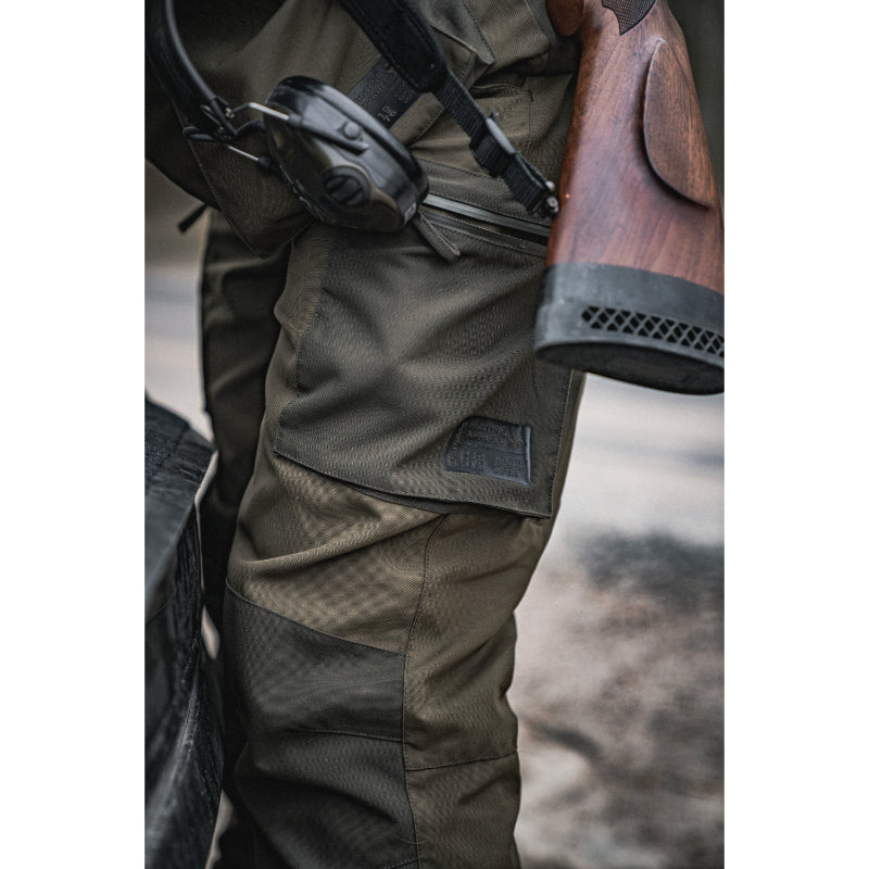 Expertly designed for outdoor enthusiasts, the Seeland Trax Seetex Waterproof Mens Trousers provide robust, weather-protected functionality with a Seetex® membrane and taped seams. Featuring an articulated fit, versatile pockets, and adjustable features, these trousers are perfect for pairing with the Trax Jacket. Stay dry and comfortable with water-repellent zippers, ventilation zippers, a cartridge holder, and a D-ring at the waist.