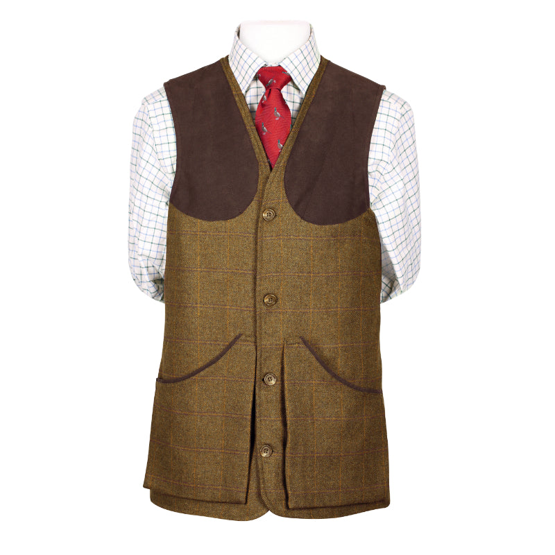 The William Powell Mens Melrose Tweed Shooting Vest is a traditional lambswool vest, finished with a Teflon coating to aid water repellence, with Alcantara shoulder patches behind where you can insert a recoil absorbing pad. Featuring two deep open cartridge pockets with wide openings, a secure inner pocket and adjustable back strap to achieve a comfortable fit. Excellent to shoot in.