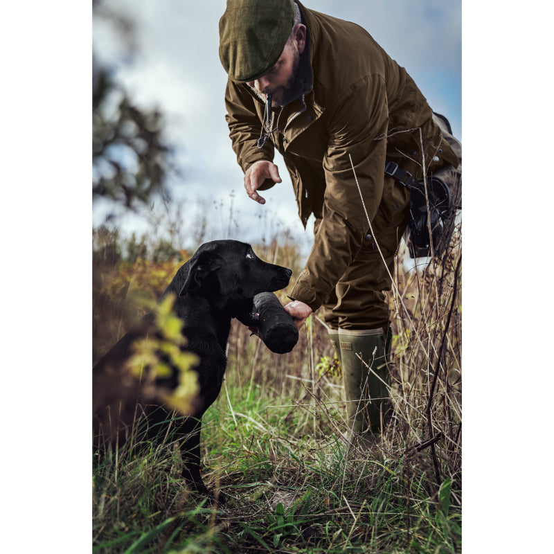 The Harkila Retrieve is crafted from a soft poly/cotton outer which gives an attractive vintage look, making this latest range a great fit for a number of roles off as well as on the field. Complete with DWR finish whilst retaining Harkila's innovative HWS two-layer membrane. This specially developed weather system provides the ultimate in waterproof, windproof and breathable technology. The Harkila Retrieve HWS Mens Shooting Jacket retains Thermo Poly Shield technology, insulation which feels like down and is lightweight and quick-drying. Features include a high storm collar, pack-away hood, two-way front zip, game pocket, large cartridge pockets with drainage holes and hand warmer pockets with quick load straps. Overall, a great jacket.