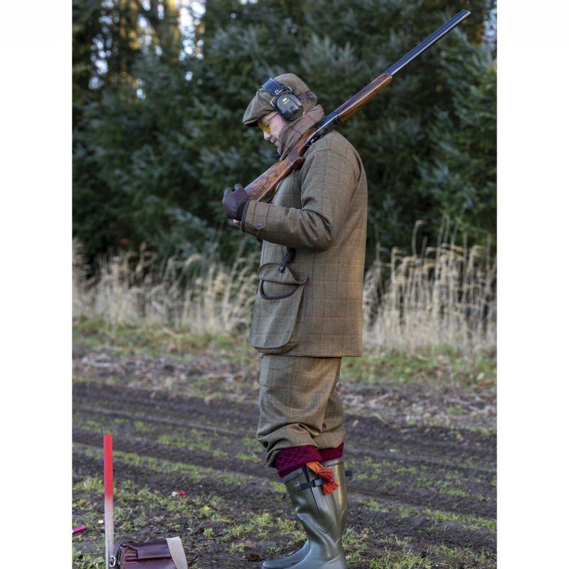 The Laksen Wingfield CTX Waterproof Tweed Mens Coat in Woolston tweed is specifically designed for shooting. Laksen’s quiet CTX™ waterproof, windproof, and breathable membrane keeps the wearer dry and comfortable. The stylish appearance is complemented by practical functionalities which include all you would expect; large cartridge pockets with drainage holes and retainer straps, hand warmer pockets, high funnel neck, and front storm flap closure along with adjustable sleeve cuffs. An incredibly smart coat that can be worn with confidence on and off the field.