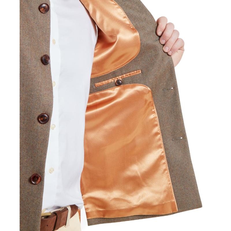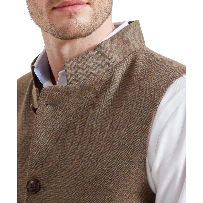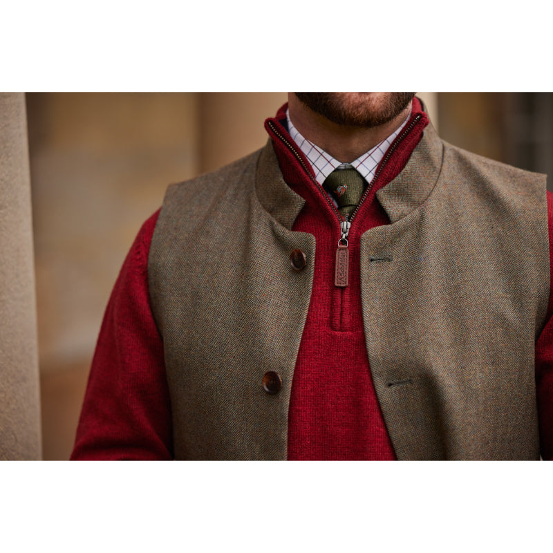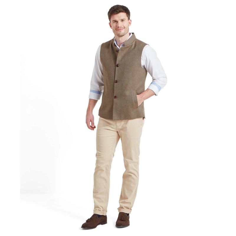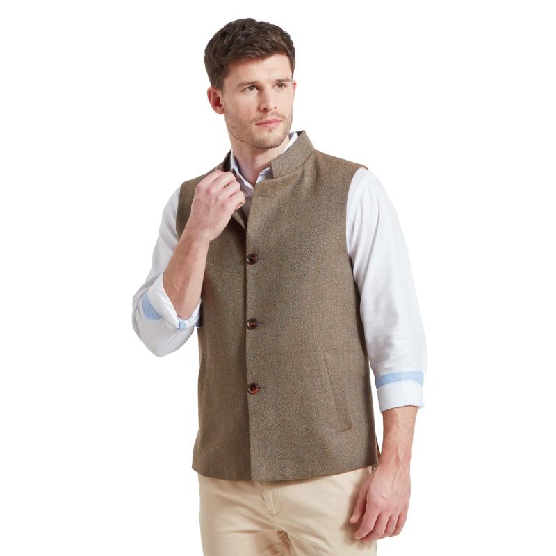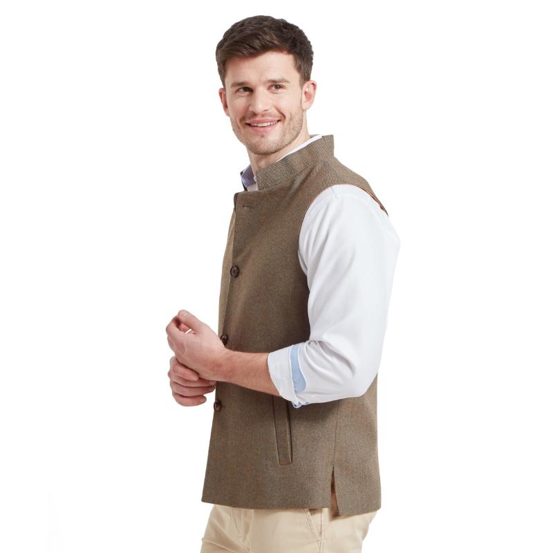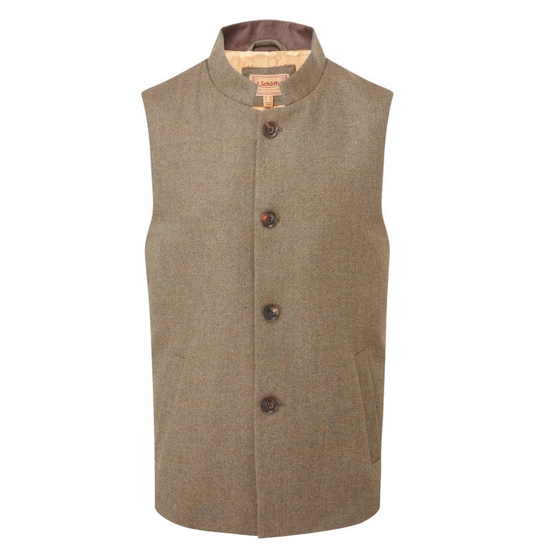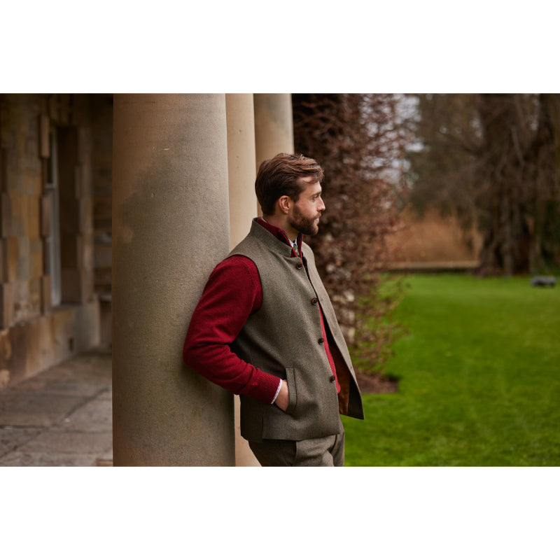 Schoffel Berwick Nehru Mens Tweed Waistcoat - Loden Green Herringbone Tweed