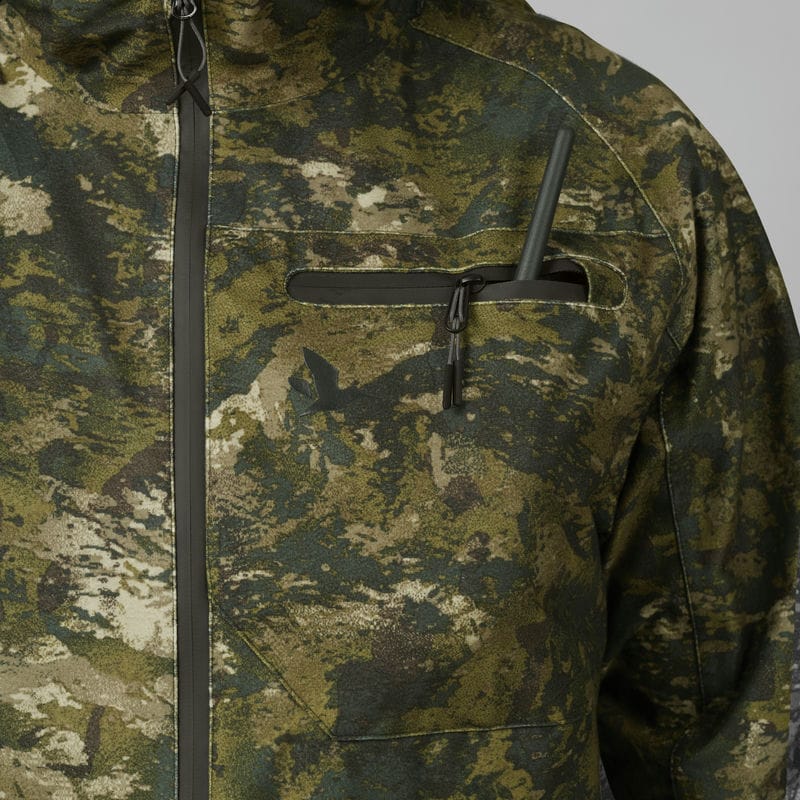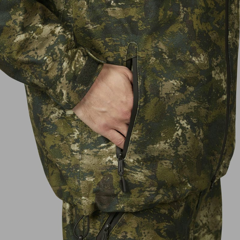 The Seeland Avail Camo Men's SEETEX Waterproof Jacket is designed for maximum protection in the outdoors. Made with a brushed, low-noise tritcot fabric and advanced InVis camo for use in any season, this jacket features a SEETEX® membrane for windproof and waterproofing with a 10,000mm hydrostatic head. It also has multiple pockets with water-repellent zips and an internal pocket with a press stud closure to protect your phone or equipment. The jacket features adjustable cuffs with hooka and loop fastenings, elasticated drawstrings at the hem and detachable hood with a shapeable brim. All zips are easy to use, even with cold hands due to the convenient straps.