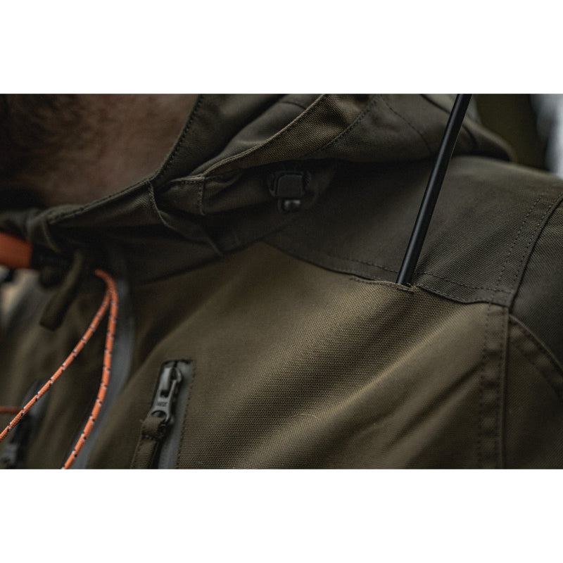 Stay protected and comfortable on your hunting trips with the Seeland Trax Seetex Waterproof Mens Jacket. Made with durable, PFAS-free Seetex® membrane, this jacket features a detachable and adjustable hood, water-repellent pockets, and a game pocket. Stay organized and prepared with the two side radio pockets and handwarmer pockets with quick load straps. Pair with the Trax Trousers and Cap for a complete set.
