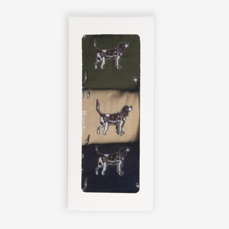 Barbour Pointer Dog Mens Sock Gift Box (Set of 3) - Forest Mist