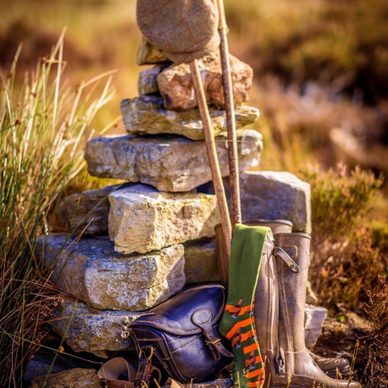 Shuttle Socks - Green and Orange Grouse Shooting Socks UK 8-12
