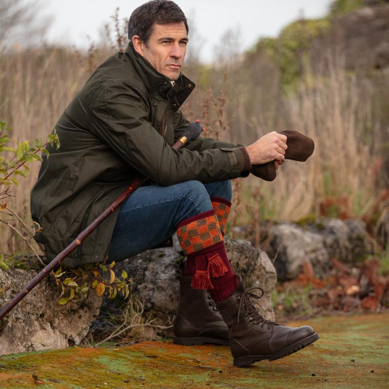 Stay warm and stylish with our William Powell Fenwick Shooting Socks. Made from a soft merino wool blend, these socks offer breathability and all-day comfort. The three-colour stitch effect adds a modern touch while the garter ties keep them secure. Perfect for shooting days or countryside walks.