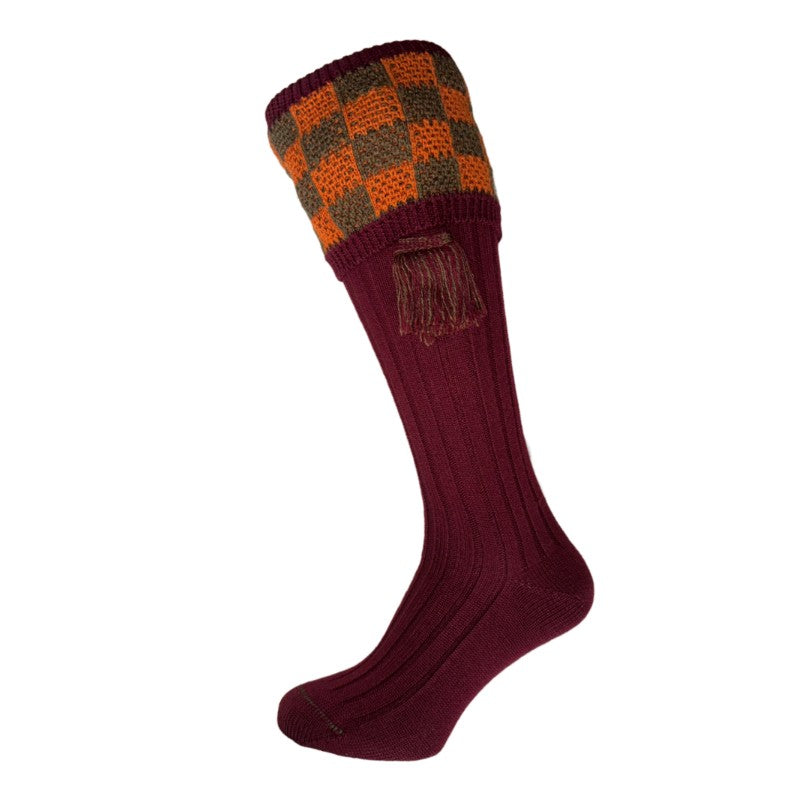 William Powell Fenwick Mens Merino Shooting Socks with Garters - Burgundy