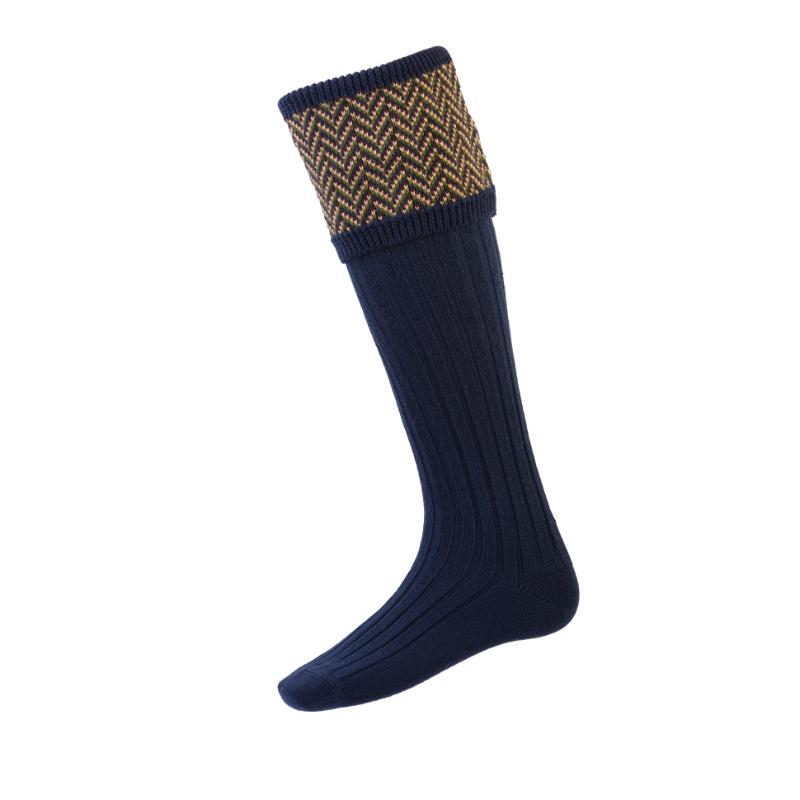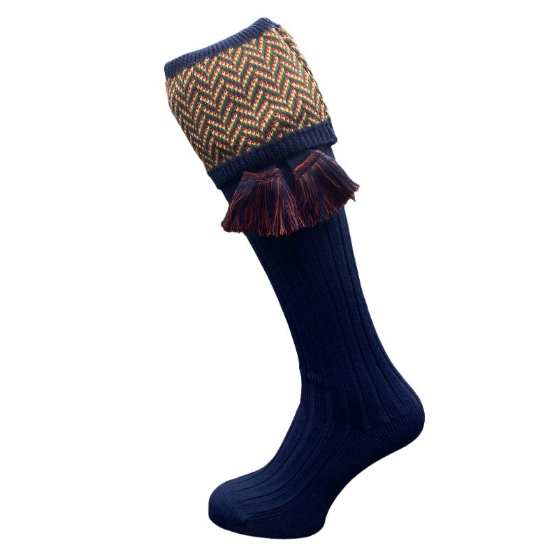William Powell Herringbone Mens Merino Mix Shooting Socks with Garters - Navy