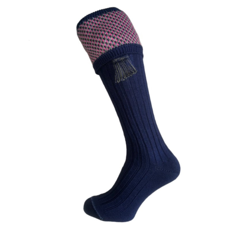William Powell Tayside Mens Merino Shooting Socks with Garters - Navy