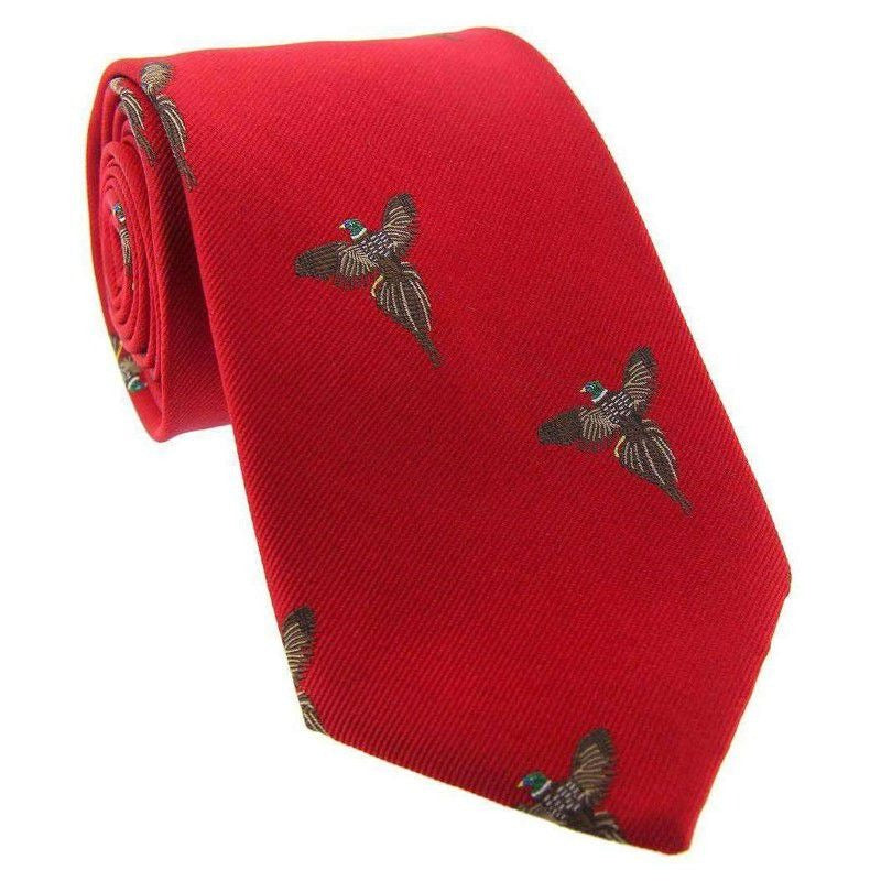Luxury Woven Flying Pheasant Silk Tie - Red