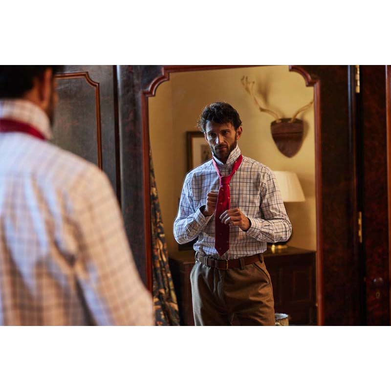 This Ashford Silk Tie from Schoffel is crafted from 100% silk for a classic, luxurious look. The hand-drawn exclusive design adds a personalized touch. The tie is also presented in a Schoffel presentation box, making it a perfect gift. Dry clean only.