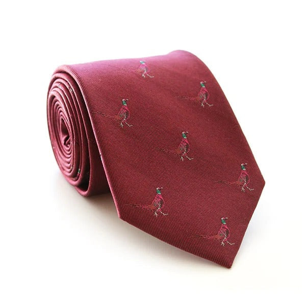 This elegant Woven Silk Pheasant Tie adds sophistication to your formal or casual look. Crafted with hand-finished woven silk, this burgundy tie features a standing pheasant motif, perfect for completing your shirt and cap ensemble for special occasions or a day of shooting.