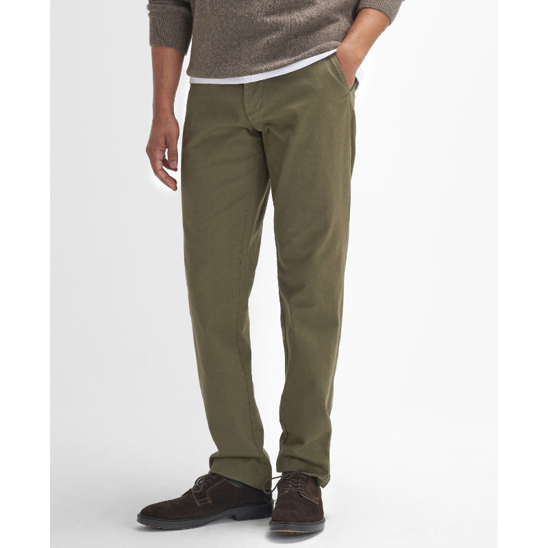Barbour Washed Stretch Twill Tailored Fit Mens Trousers - Olive
