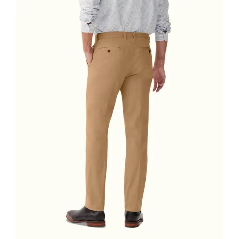 The R.M.Williams Berwick Mens Chino Trousers offer versatility and comfort with a modern silhouette. Cut from French stretch cotton twill, they feature tailored details like match pockets and a longhorn tab, plus a touch of inbuilt stretch for superior comfort and herringbone lining. This timeless style pairs well with dress shirts for smart occasions or sweaters for a casual chic style.