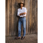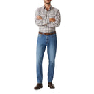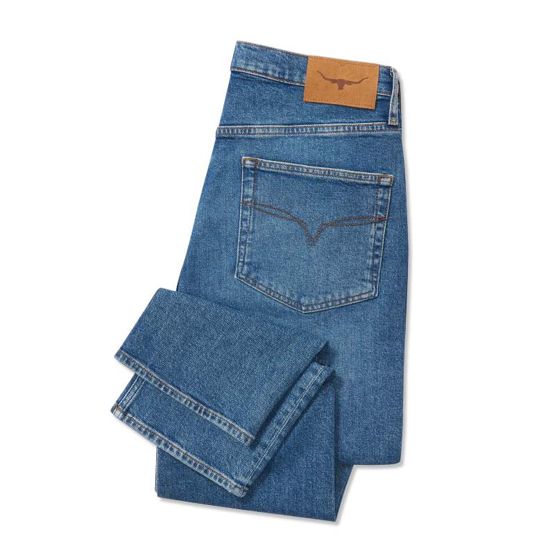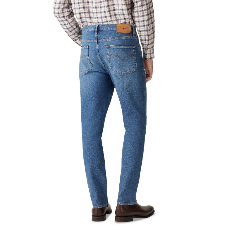 Upgrade your denim game with the R.M.Williams Loxton II Mens Jeans. The updated Loxton shape features a standard rise, roomy fit through the hip, and a gentle taper for a comfortable and stylish look. Made from 13oz comfort stretch denim, this authentic five-pocket jean is complete with branded buttons and rivets, a Longhorn suede back patch, and signature stitching. Your new go-to for effortless style.