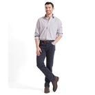Crafted from stretch cotton twill, these Schoffel Canterbury men's 5-pocket jeans offer both comfort and durability. The regular fit ensures a classic silhouette, while contrast piping adds subtle detailing. Featuring Schoffel-branded leather piping and a traditional 5-pocket design, these jeans combine timeless style with expert craftsmanship for everyday wear.