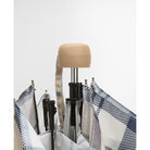 The Barbour Portree Tartan Umbrella merges heritage aesthetics with practical design. Its distinctive tartan pattern adds refined character to any ensemble, whilst the telescopic mechanism offers convenient portability for travel and everyday use. The wooden handle provides superior grip and comfort during wet weather, combining traditional craftsmanship with functional elegance. An essential accessory for those who appreciate quality construction and timeless British style.