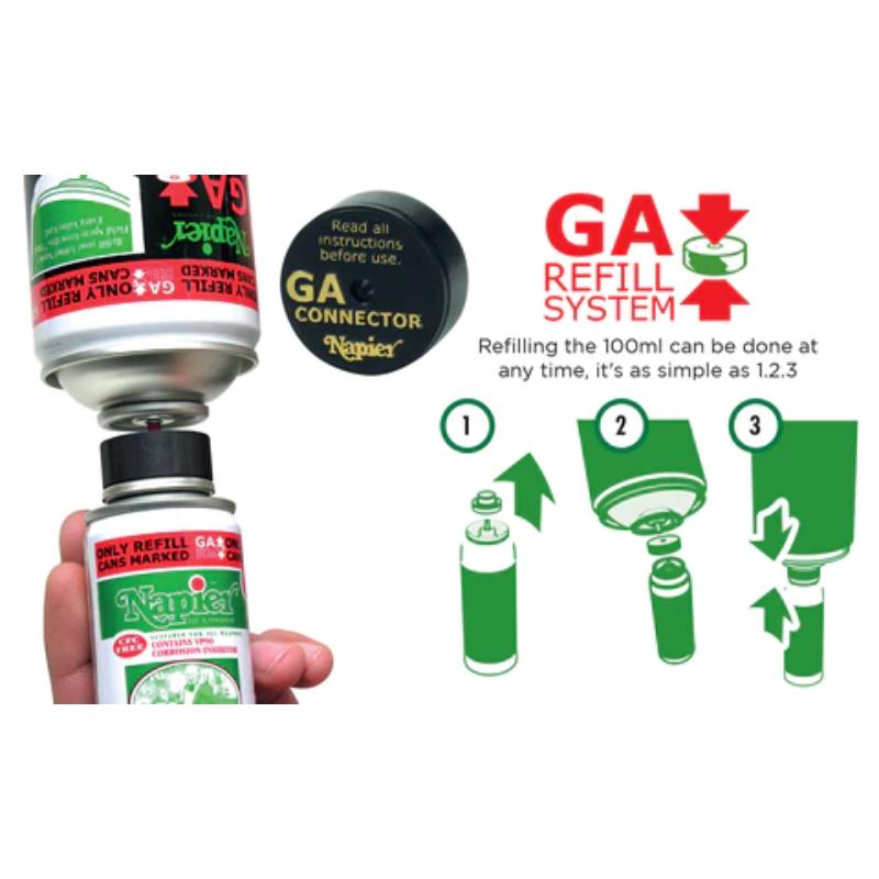 Napier Gun Cleaner adaptor to refill 100 or 300ml aerosol.