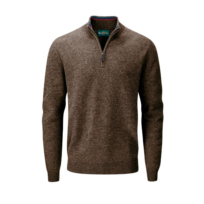 Alan Paine Streetly 1/4 Zip Mens Lambswool Jumper - Cocoa