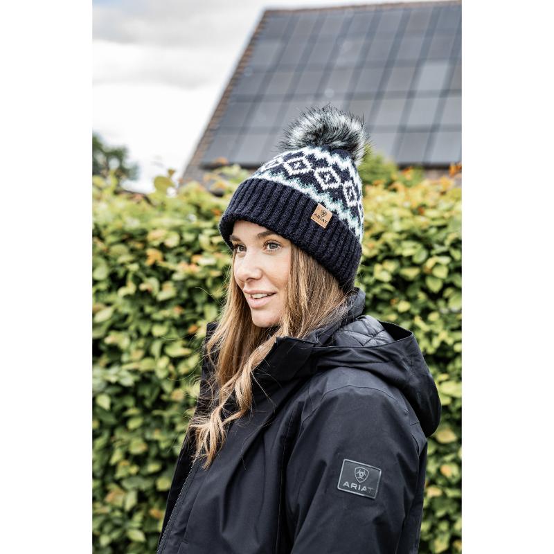 Crafted from 100% acrylic with a luxurious faux fur pom pom, the Ariat Bristol Beanie combines warmth with style. The distinctive fairisle pattern adds traditional charm, while the folded cuff with Ariat logo tab provides an elegant finishing touch. Perfect for maintaining warmth without compromising on sophistication.