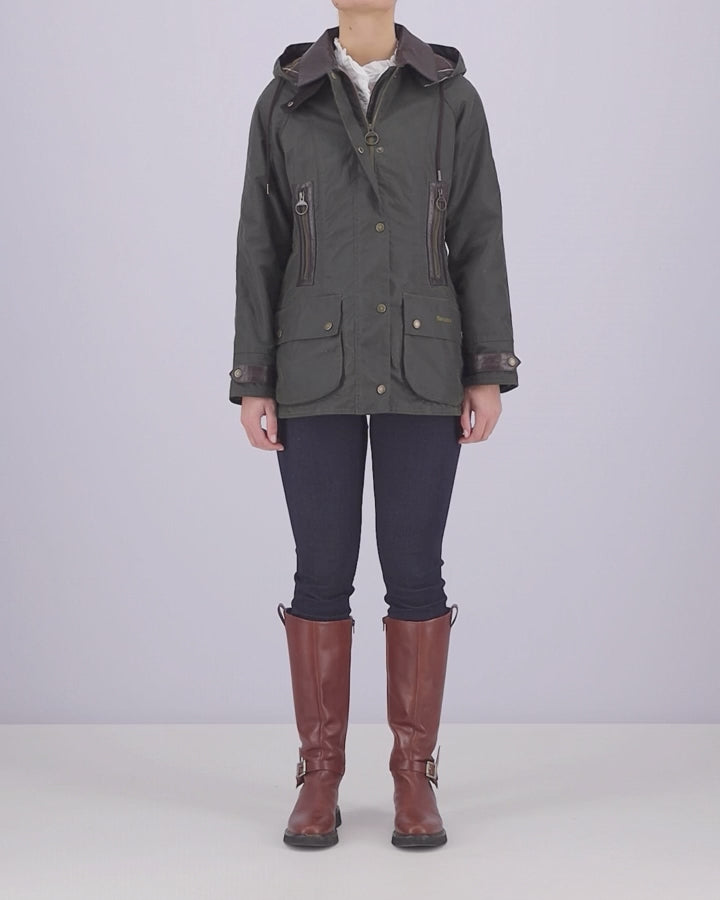 The Barbour Ivy Ladies Wax Jacket blends classic design with practical features. Inspired by the Beadnell style, it includes a leather collar, leather handwarmer pockets, and cuff tabs for added comfort and durability. A detachable hood enhances versatility, while the Barbour tartan lining adds a heritage touch. Ideal for outdoor adventures, this jacket offers reliable protection without compromising on timeless style.