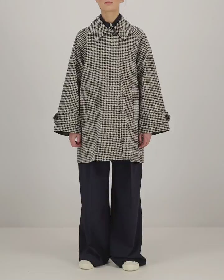 Barbour's Kennedy Check reimagines the heritage coat for the modern wearer. The houndstooth pattern delivers understated elegance, whilst practical design elements ensure everyday wearability. A 50L button secures the neckline, concealed studs provide discreet fastening, and expansive welt pockets offer genuine utility. Button-tab detailed cuffs add sartorial refinement to this showerproof layer. Equally at home navigating urban streets or countryside pursuits, this jacket exemplifies Barbour's mastery of functional outerwear design.