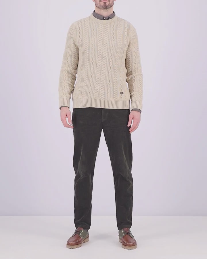 Barbour Lowfen Cable Knit Crew Neck Mens Jumper - Stone